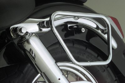 Honda Vt750 DC Motorcycle Saddlebag Supports or Honda  Black Widow till 2004 saddlebag supports essential for your safety prevents your bags weraing on inside and going into the rear wheel , plus bags can be tied to them to prevent flapping around and see our saddleba clips too-that bolt to the bags to prevent any movement - no more bags melting on your exhaust!! Our supports are generally made in US  or Europe  ensuring we  keep jobs and industry is supported - they may be cheaper in far east but as you know chrome and  warranty often not as good or quality- call 01773835666 for advice on suitable bags foryour bike on 01773835666 or email  sales@customcruisers.com  thanks-Mike