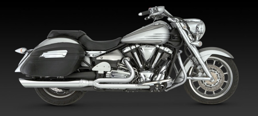The Yamaha Midnight Star Stratoliner or Just plain old XV1900! The bike that's reset the bar for metric cruiser style and performance now has a pipe to match. The new Vance & Hines 2-into-1 for Yamaha Roadliner and Stratoliner models opens up the power curve of the big 113 cubic inch motor and sweetens its big bike rumble.
