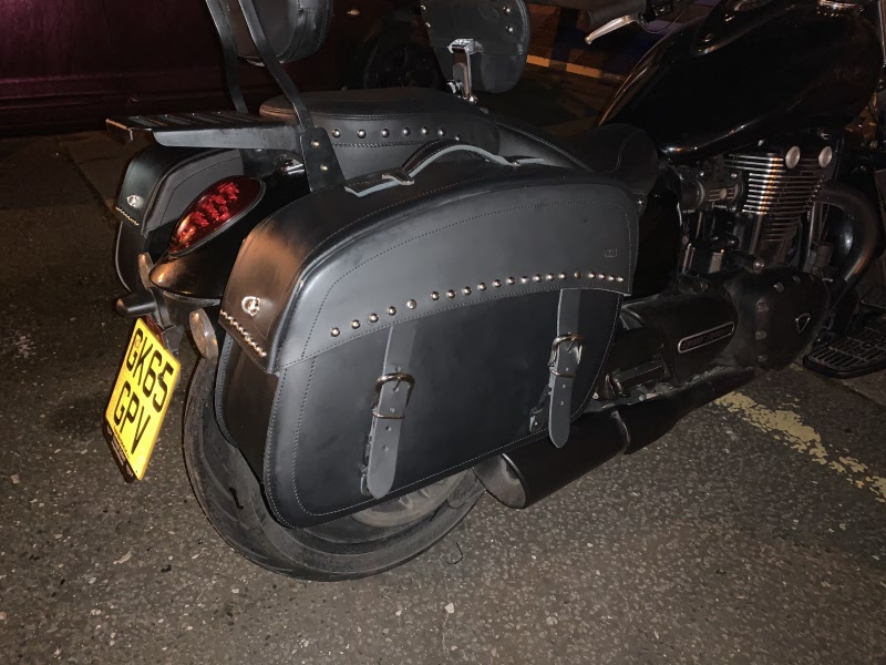 Triumph Thunderbird Storm Saddlebags XXL Magnum Studded lockable  Quick release panniers leather 30 Litres each Motorcycle Accessories from Custom Cruisers Ltd.