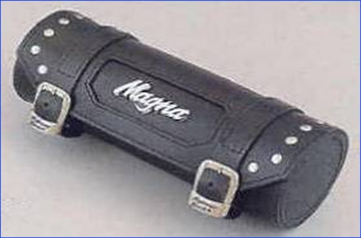 Ultra cool black leather tool roll, hand made, in a range of finishes: black or white stitching, studded or plain.  Please use the option box to make your choice.comes with all mounting straps and is a top quality item adds looks and functionality to your steed!