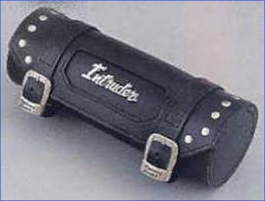 Ultra cool black leather tool roll, hand made, in a range of finishes: black or white stitching, studded or plain. Please use the option box to make your choice.comes with all mounting straps and is a top quality item adds looks and functionality to your steed!