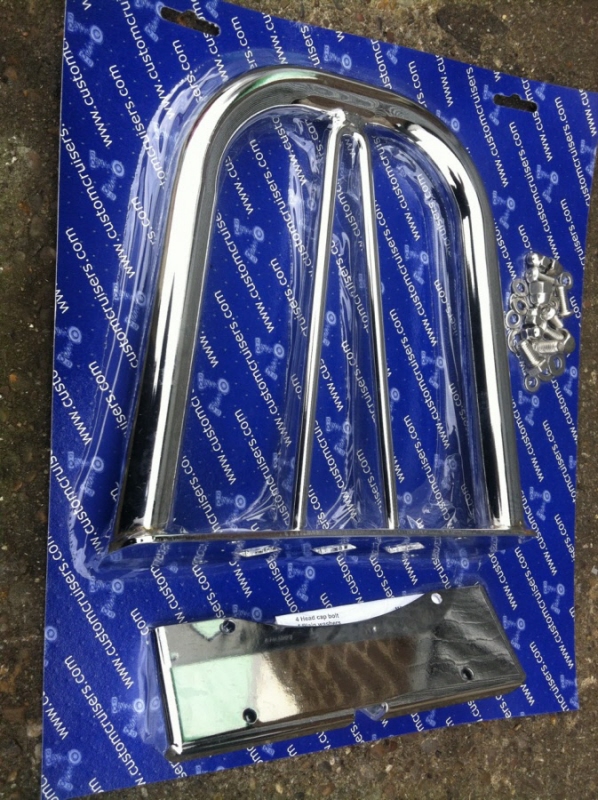This is a sissybar kit that allows mounting of the original rider backrest/rear small seat in a socket at the back to act as a pillion backrest when using the Comfort seat , also available is our optional rear carrier/ rack .