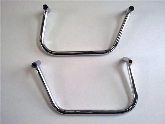 Motorcycle Accessory : Magnum saddlebag supports, 13mm Chrome plated tubular steel. All required hardware included. Except Blackline and FLSTN Softail Deluxe All ...